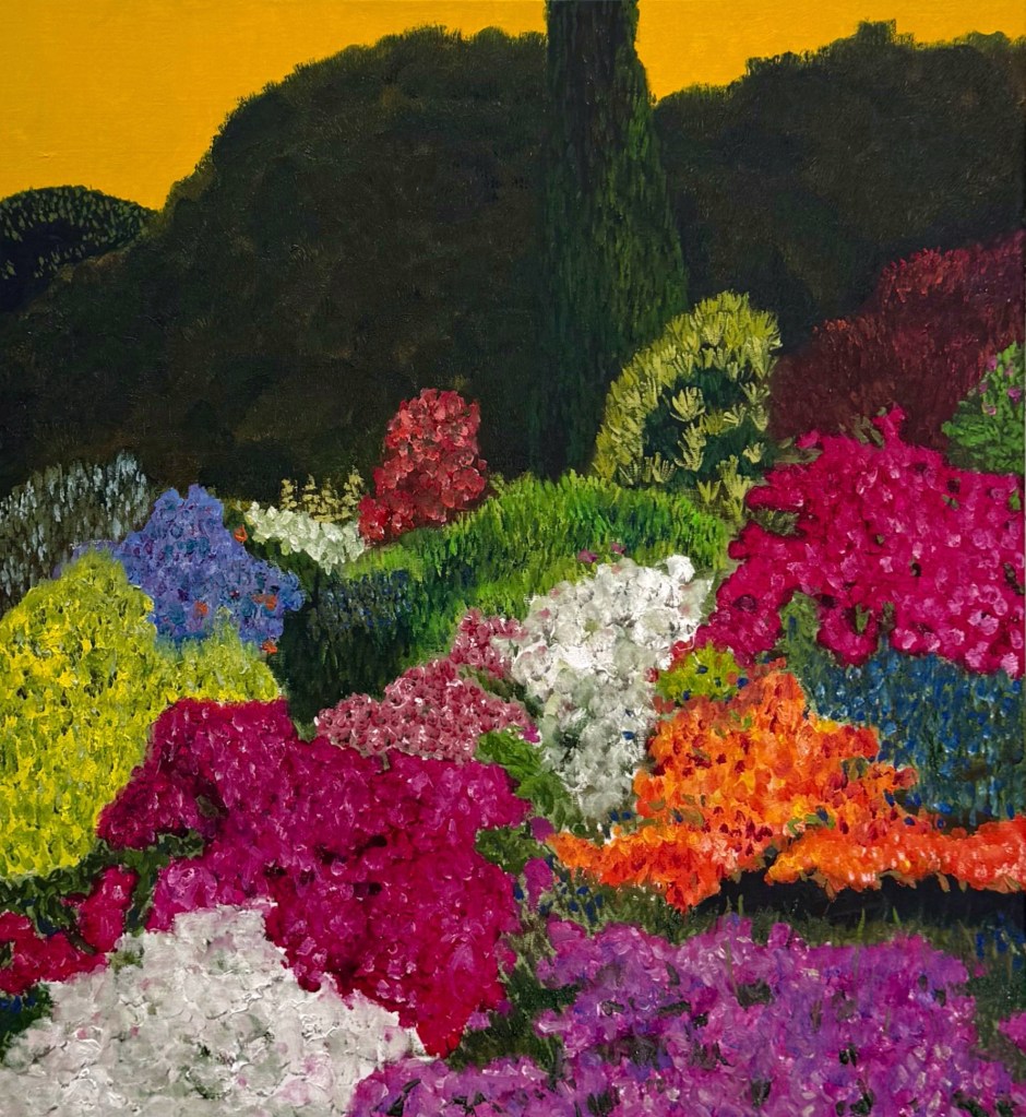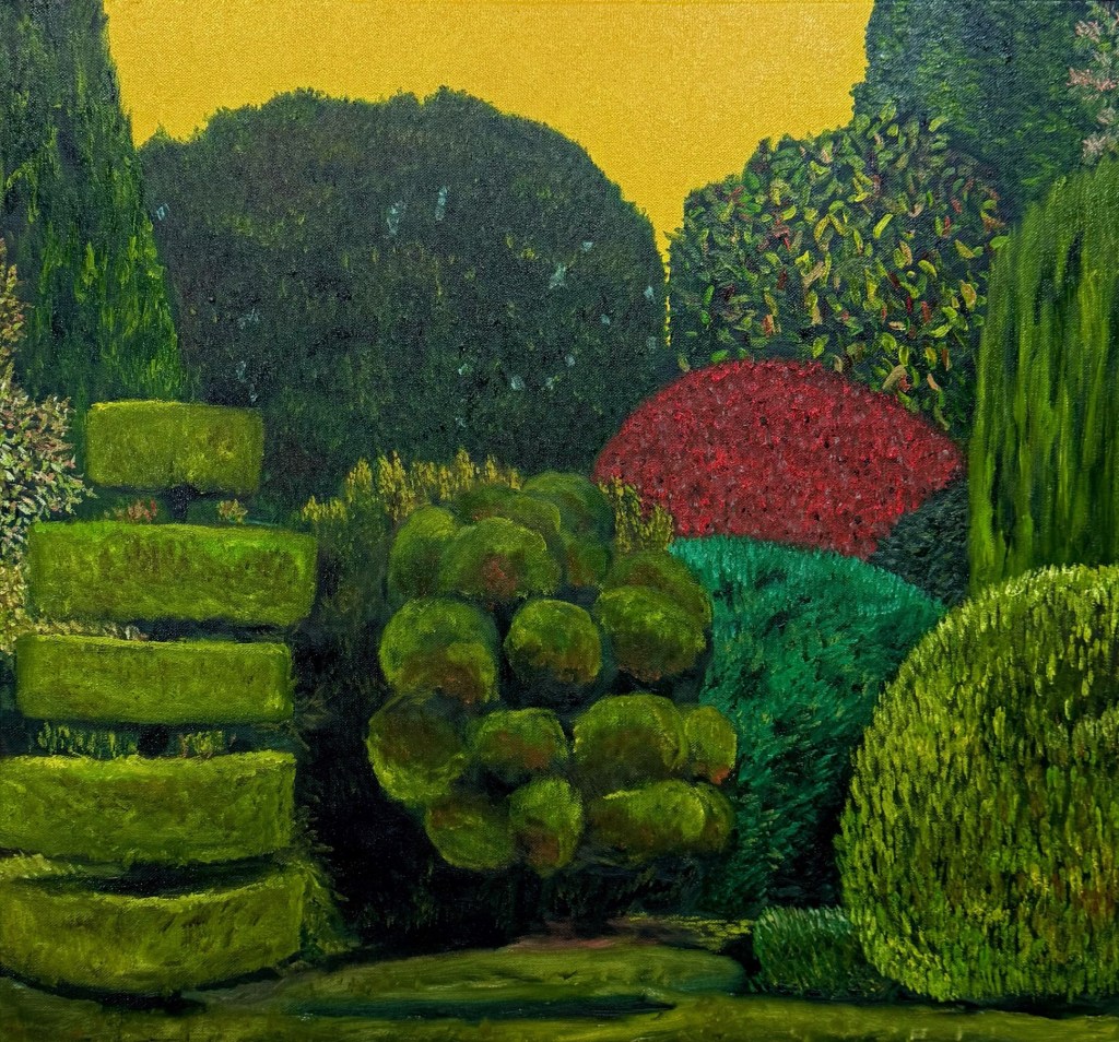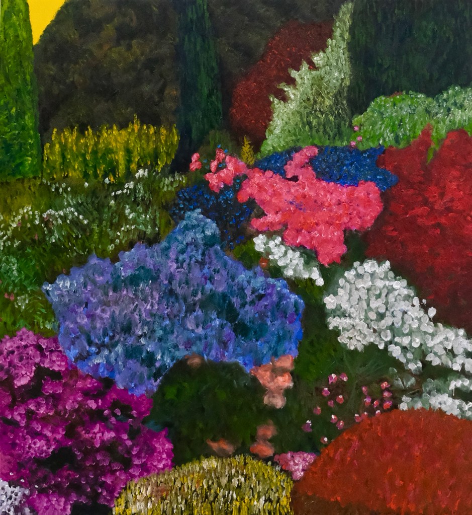 The garden here becomes a mask: a surface of cultivated calm concealing the pulse of disorder beneath. Each brushstroke rehearses this tension, the desire to compose, the acceptance of collapse. Form gathers, disperses, gathers again.